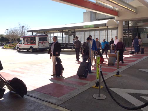 Shuttles are located outside Baggage Claim of the Domestic Terminal.